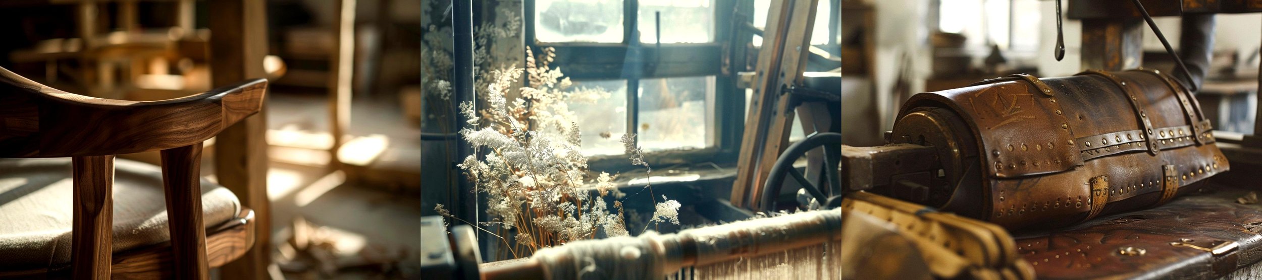 Craftsmanship captured in wood, linen, and leather — the quiet beauty of things made with care.